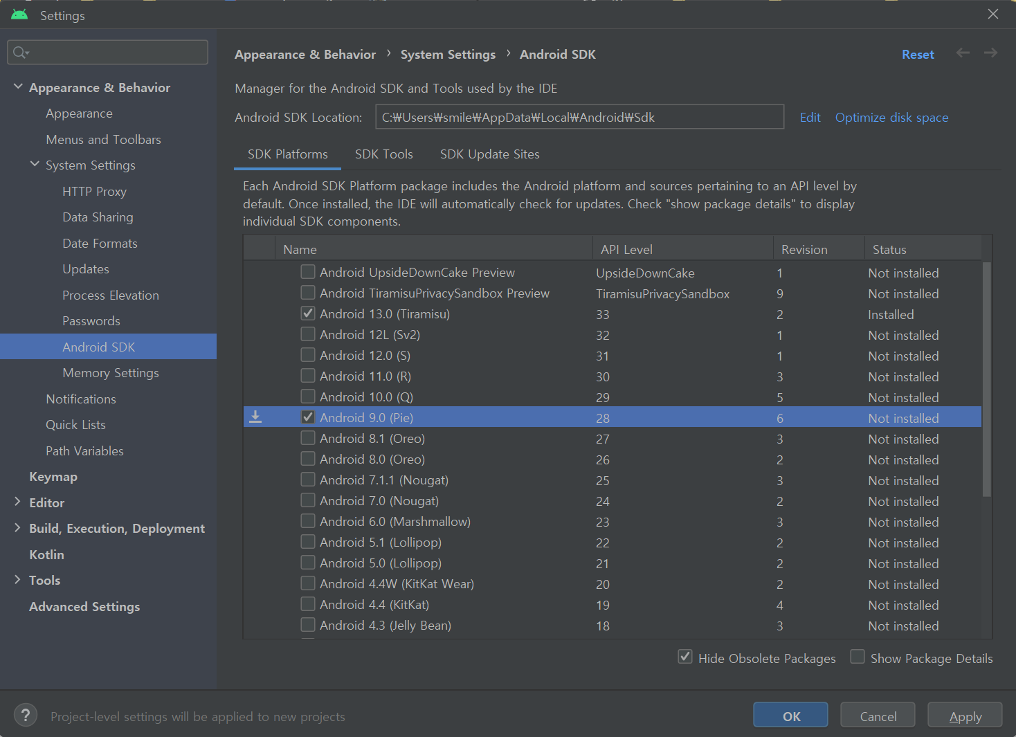 3. Android SDK ๋ค์ด๋ก๋ ๋ฐ๊ธฐ