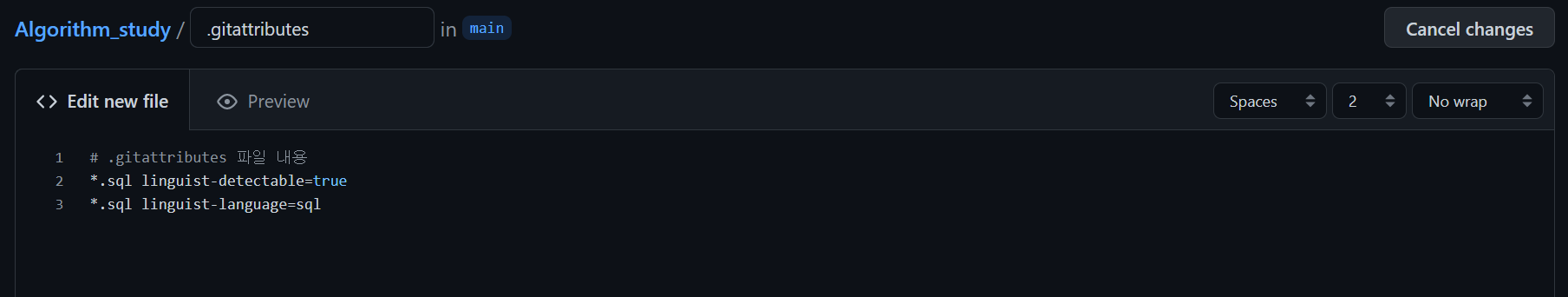 SQL์ ํฌํจํ๋ ๋ ํฌ์งํ ๋ฆฌ์ .gitattributes๋ผ๋ ํ์ผ์ ๋ง๋ ๋ค.