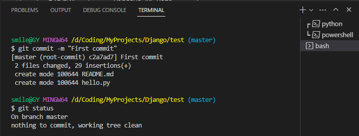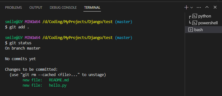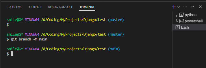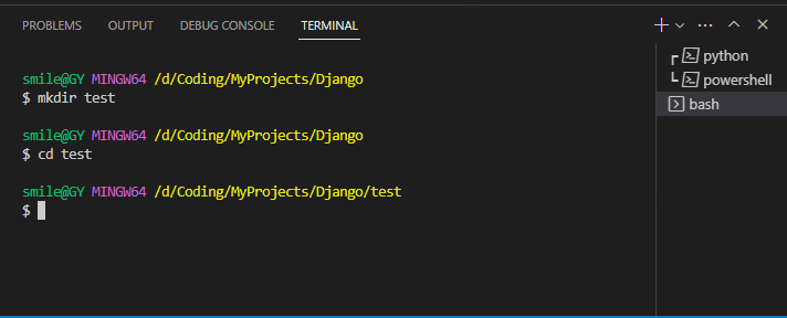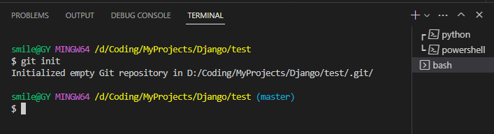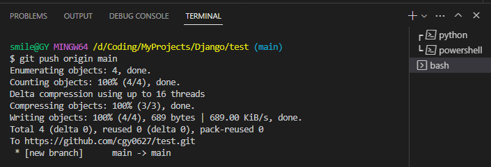 2. VSCode bash ํฐ๋ฏธ๋์์ ๋ด๊ฐ GitHub๋ก ์ฌ๋ฆฌ๊ณ ์ถ์ ํด๋ ์ด๊ธฐ