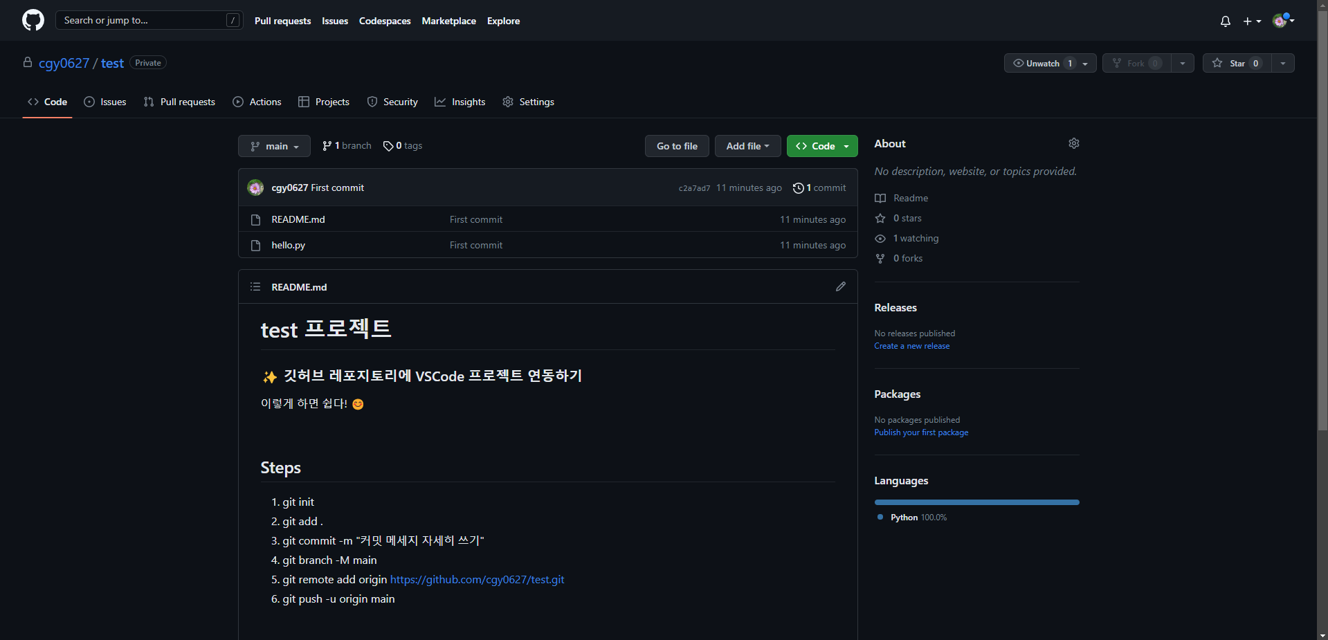 3. ํ๋ก์ ํธ์ Git ์ ์ฅ์๋ฅผ ์๋ก ์์ฑํ๊ธฐ