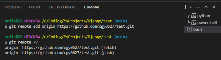 7. "origin"์ด๋ผ๋ ์ด๋ฆ์ผ๋ก 1๋ฒ์์ ์์ฑํ ๋ ํฌ์งํ ๋ฆฌ์ ์ฐ๋ํ๊ณ , ์ ์ฐ๋๋์๋์ง ํ์ธํ๊ธฐ