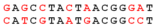 DNA 염기서열 2개가 주어졌을 때, Hamming distance를 구하시오.